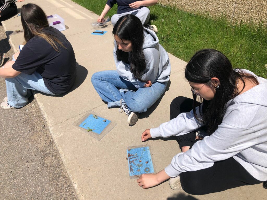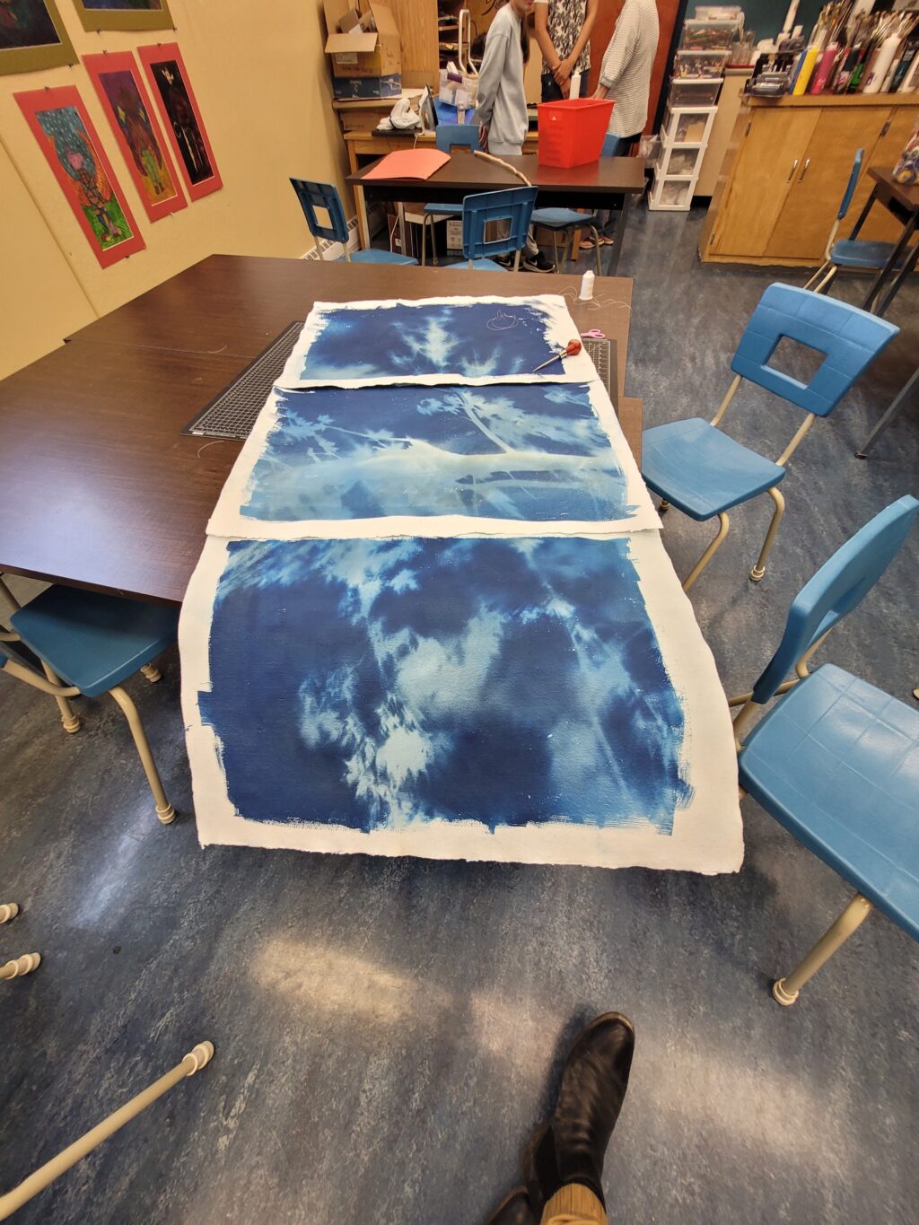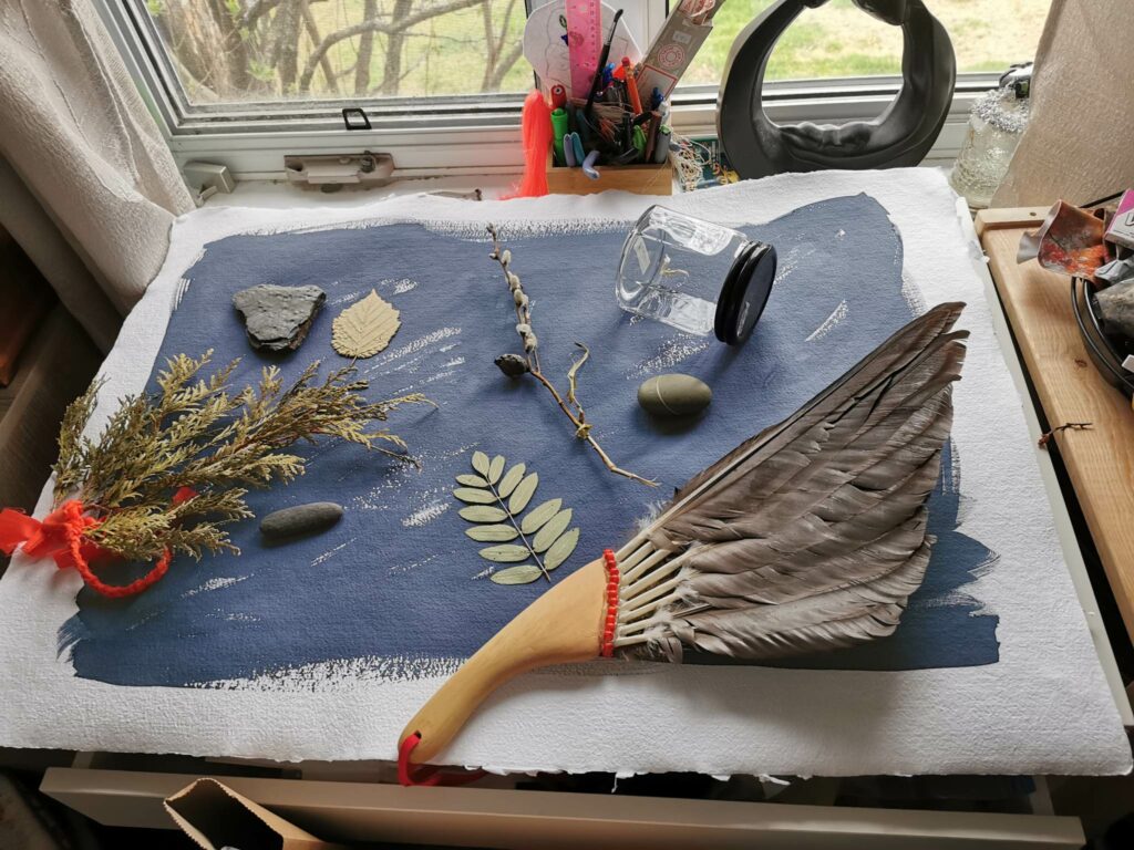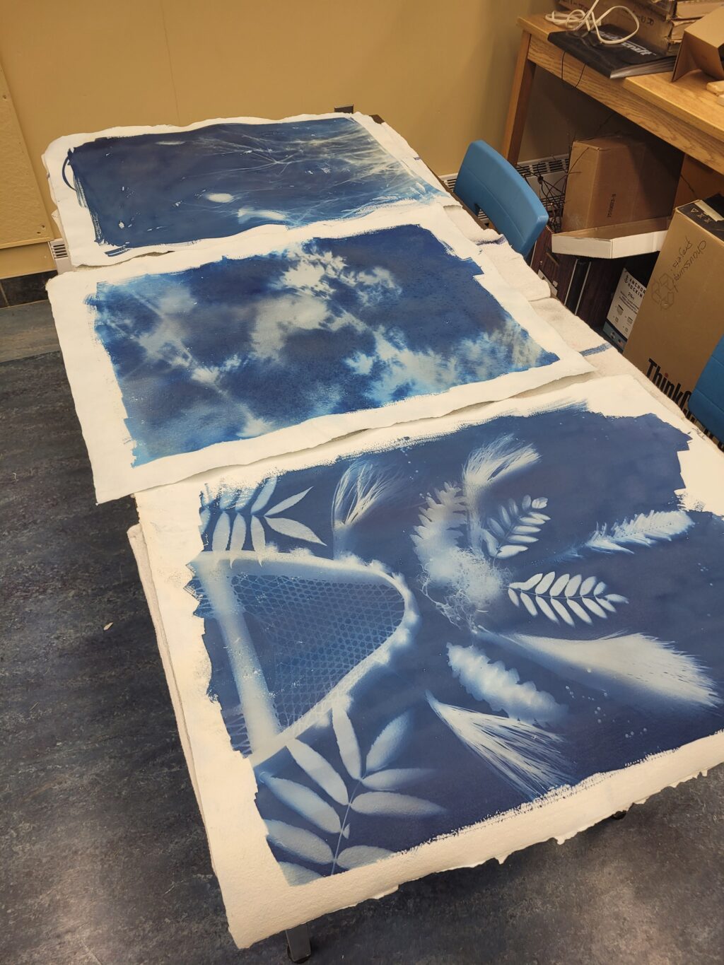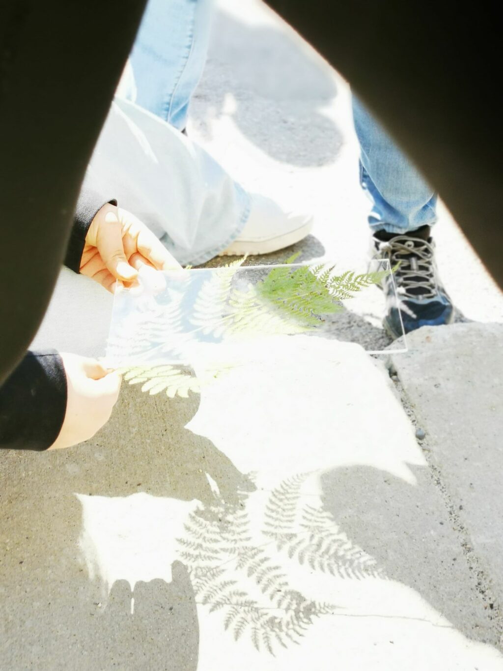 Photos du projet en cours, cueillette d’artéfacts et de sons ainsi que réalisation de cyanotypes.